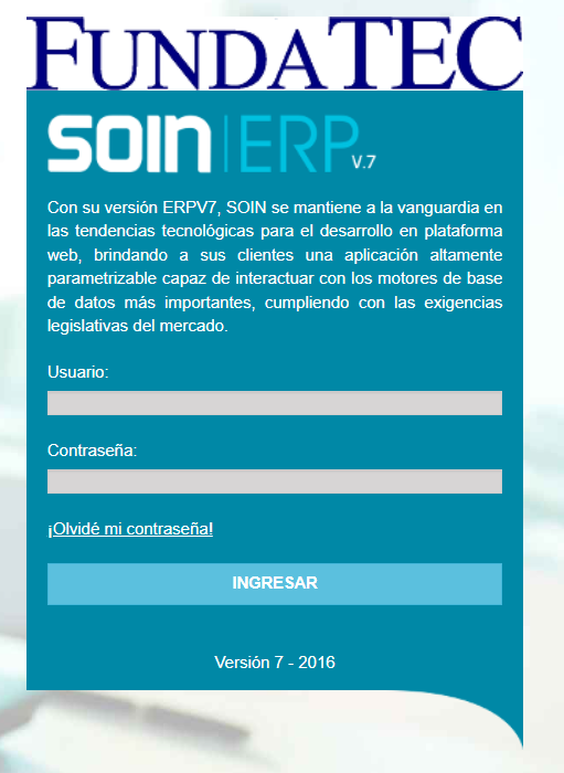 1) Ingrese al sitio de SOIN FUNDATEC (https://sistemafundatec.tec.ac.cr:8500/)
